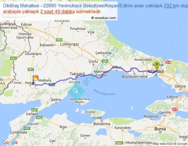 Dikilitaş Mahallesi - 22880 Yenimuhacir Belediyesi Keşan Edirne arası detaylı bilgi