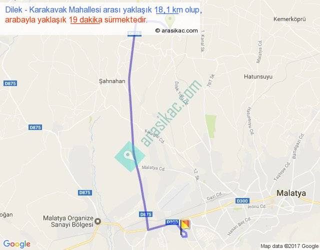 Dilek - Karakavak Mahallesi arası yaklaşık olarak 90 km/h ile yukarıda belirtilen sürede olup, iki yerin kuş uçuşu uzaklığı (mesafesi) 12'dir. Yolculuk otobüsle 24 dakika sürmektedir.