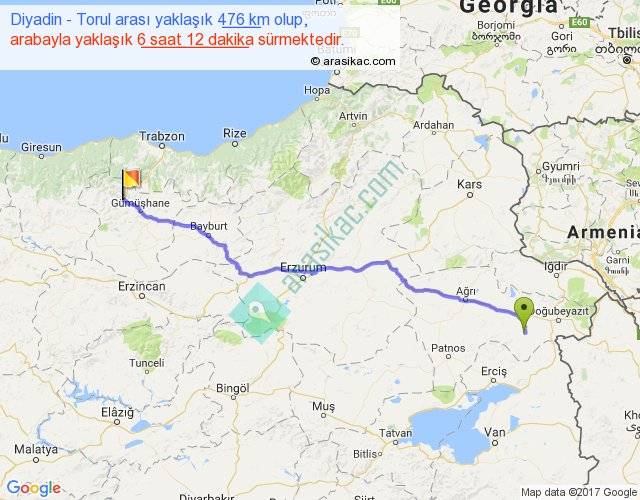Eğer Diyadin Torul arası ne kadar yakar (benzin/mazot) diyorsanız, kilometrede 3 ₺ yakan bir aracınız var ise 1428, km'de 4 ₺ yakan bir aracınız var ise 1904, km'de 5 ₺ yakan bir aracınız var ise 2380 ile bu yolculuğu tamamlayabilirsiniz.