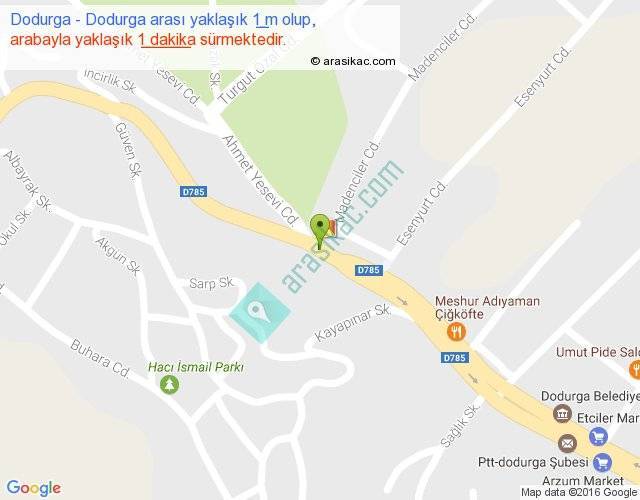 Dodurga - Dodurga arası yaklaşık olarak 90 km/h ile yukarıda belirtilen sürede olup, iki yerin kuş uçuşu uzaklığı (mesafesi) 0'dir. Yolculuk otobüsle 1 dakika sürmektedir.