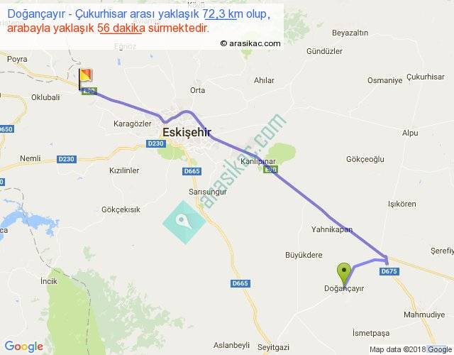 Doğançayır - Çukurhisar arası yaklaşık olarak 90 km/h ile yukarıda belirtilen sürede olup, iki yerin kuş uçuşu uzaklığı (mesafesi) 54'dir. Yolculuk otobüsle 1 saat 12 dakika sürmektedir.
