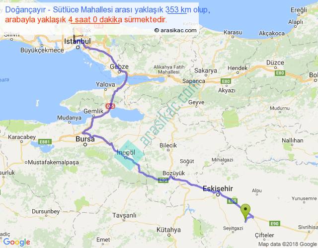 Doğançayır - Sütlüce Mahallesi arası yaklaşık olarak 90 km/h ile yukarıda belirtilen sürede olup, iki yerin kuş uçuşu uzaklığı (mesafesi) 231'dir. Yolculuk otobüsle 5 saat 12 dakika sürmektedir.