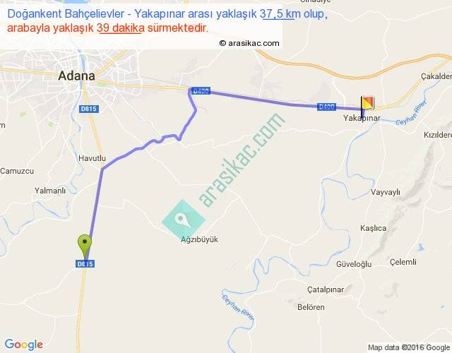 Doğankent Bahçelievler - Yakapınar arası yaklaşık olarak 90 km/h ile yukarıda belirtilen sürede olup, iki yerin kuş uçuşu uzaklığı (mesafesi) 27'dir. Yolculuk otobüsle 50 dakika sürmektedir.