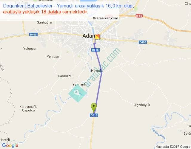 Doğankent Bahçelievler - Yamaçlı arası yaklaşık olarak 90 km/h ile yukarıda belirtilen sürede olup, iki yerin kuş uçuşu uzaklığı (mesafesi) 14'dir. Yolculuk otobüsle 23 dakika sürmektedir.