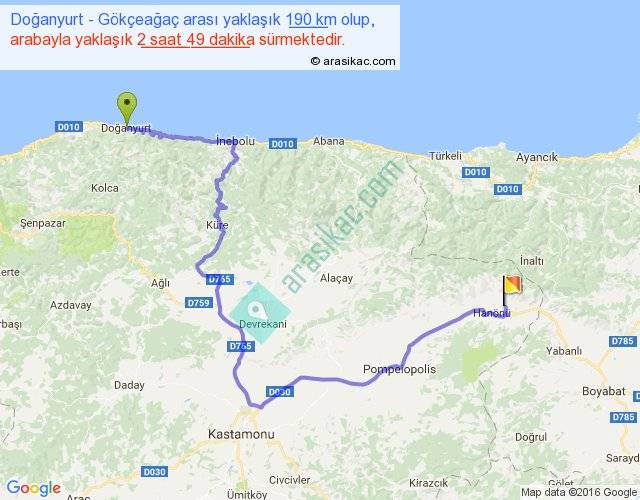 Eğer Doğanyurt Gökçeağaç arası ne kadar yakar (benzin/mazot) diyorsanız, kilometrede 3 ₺ yakan bir aracınız var ise 570, km'de 4 ₺ yakan bir aracınız var ise 760, km'de 5 ₺ yakan bir aracınız var ise 950 ile bu yolculuğu tamamlayabilirsiniz.