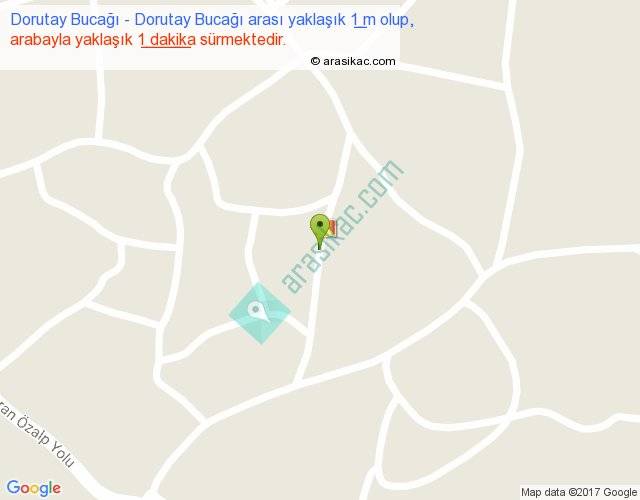 Dorutay Bucağı - Dorutay Bucağı arası yaklaşık olarak 90 km/h ile yukarıda belirtilen sürede olup, iki yerin kuş uçuşu uzaklığı (mesafesi) 0'dir. Yolculuk otobüsle 1 dakika sürmektedir.