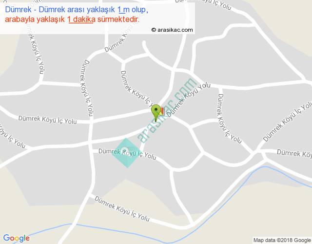 Dümrek - Dümrek arası yaklaşık olarak 90 km/h ile yukarıda belirtilen sürede olup, iki yerin kuş uçuşu uzaklığı (mesafesi) 0'dir. Yolculuk otobüsle 1 dakika sürmektedir.