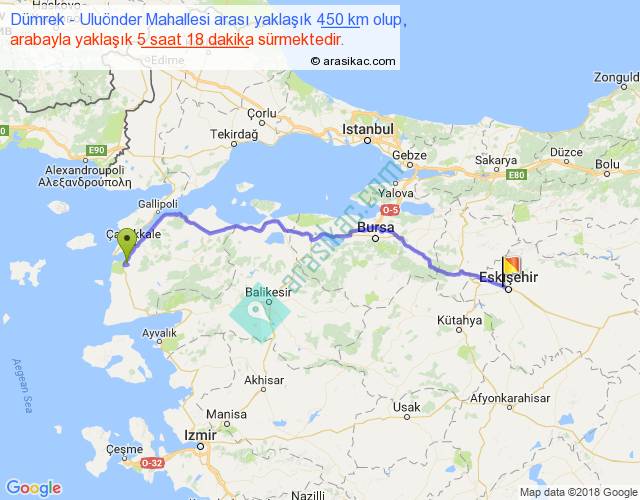 Dümrek - Uluönder Mahallesi arası yaklaşık olarak 90 km/h ile yukarıda belirtilen sürede olup, iki yerin kuş uçuşu uzaklığı (mesafesi) 352'dir. Eğer belirtilen yerler arasında uçak seferi var ise bu süre uçakla 32 dakika'ya kadar düşebilir. Yolculuk otobüsle 6 saat 53 dakika sürmektedir.