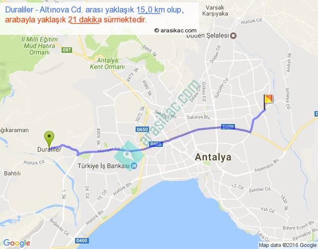 Duraliler - Altınova Cd. arası detaylı bilgi