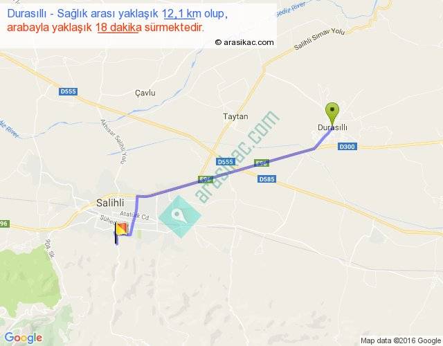 Durasıllı - Sağlık arası yaklaşık olarak 90 km/h ile yukarıda belirtilen sürede olup, iki yerin kuş uçuşu uzaklığı (mesafesi) 11'dir. Yolculuk otobüsle 23 dakika sürmektedir.