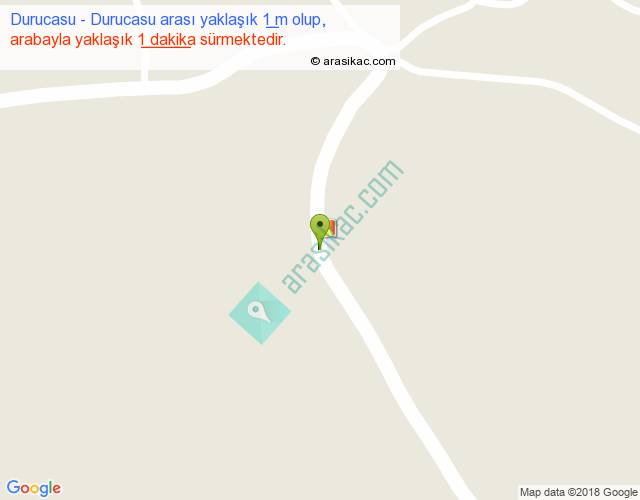 Durucasu - Durucasu arası yaklaşık olarak 90 km/h ile yukarıda belirtilen sürede olup, iki yerin kuş uçuşu uzaklığı (mesafesi) 0'dir. Yolculuk otobüsle 1 dakika sürmektedir.