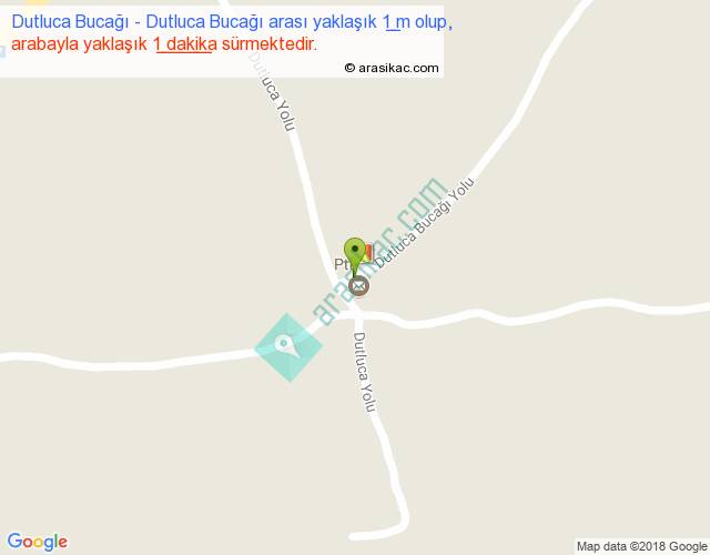Dutluca Bucağı - Dutluca Bucağı arası yaklaşık olarak 90 km/h ile yukarıda belirtilen sürede olup, iki yerin kuş uçuşu uzaklığı (mesafesi) 0'dir. Yolculuk otobüsle 1 dakika sürmektedir.