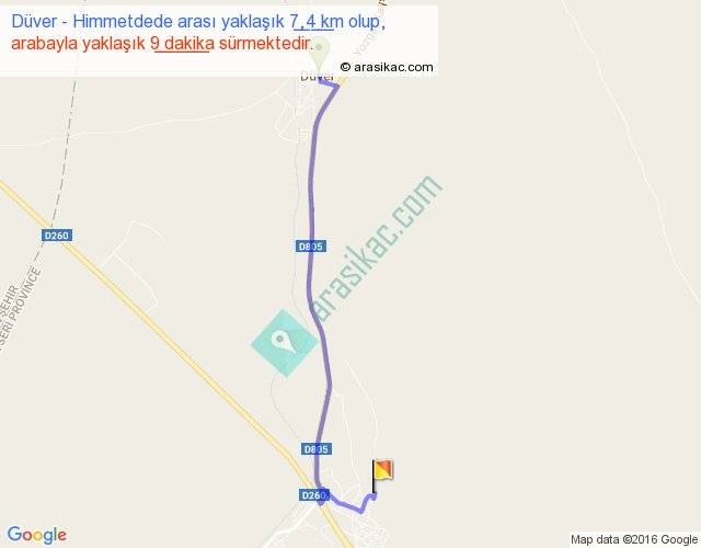 Düver - Himmetdede arası yaklaşık olarak 90 km/h ile yukarıda belirtilen sürede olup, iki yerin kuş uçuşu uzaklığı (mesafesi) 6'dir. Yolculuk otobüsle 11 dakika sürmektedir.