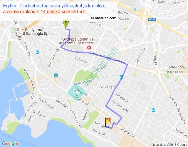Eğitim - Caddebostan arası yaklaşık olarak 90 km/h ile yukarıda belirtilen sürede olup, iki yerin kuş uçuşu uzaklığı (mesafesi) 3'dir. Yolculuk otobüsle 18 dakika sürmektedir.