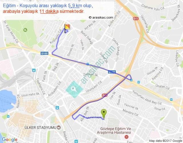 Eğer Eğitim Koşuyolu arası ne kadar yakar (benzin/mazot) diyorsanız, kilometrede 3 ₺ yakan bir aracınız var ise 15, km'de 4 ₺ yakan bir aracınız var ise 20, km'de 5 ₺ yakan bir aracınız var ise 25 ile bu yolculuğu tamamlayabilirsiniz.