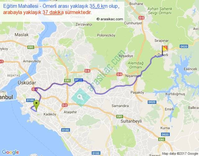Eğitim Mahallesi - Ömerli arası yaklaşık olarak 90 km/h ile yukarıda belirtilen sürede olup, iki yerin kuş uçuşu uzaklığı (mesafesi) 25'dir. Yolculuk otobüsle 48 dakika sürmektedir.
