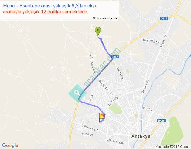 Ekinci - Esentepe arası yaklaşık olarak 90 km/h ile yukarıda belirtilen sürede olup, iki yerin kuş uçuşu uzaklığı (mesafesi) 4'dir. Yolculuk otobüsle 15 dakika sürmektedir.