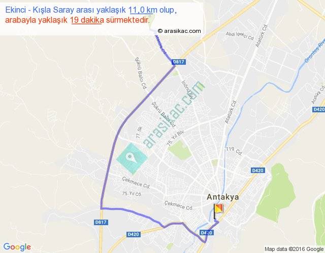 Ekinci - Kışla Saray arası yaklaşık olarak 90 km/h ile yukarıda belirtilen sürede olup, iki yerin kuş uçuşu uzaklığı (mesafesi) 6'dir. Yolculuk otobüsle 24 dakika sürmektedir.