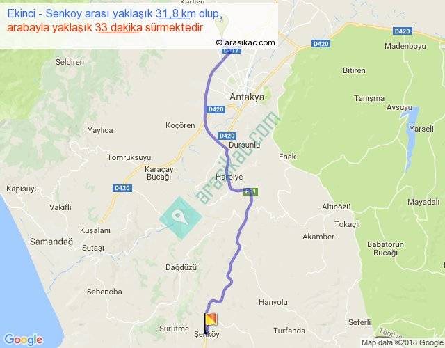 Ekinci - Senkoy arası yaklaşık olarak 90 km/h ile yukarıda belirtilen sürede olup, iki yerin kuş uçuşu uzaklığı (mesafesi) 26'dir. Yolculuk otobüsle 42 dakika sürmektedir.