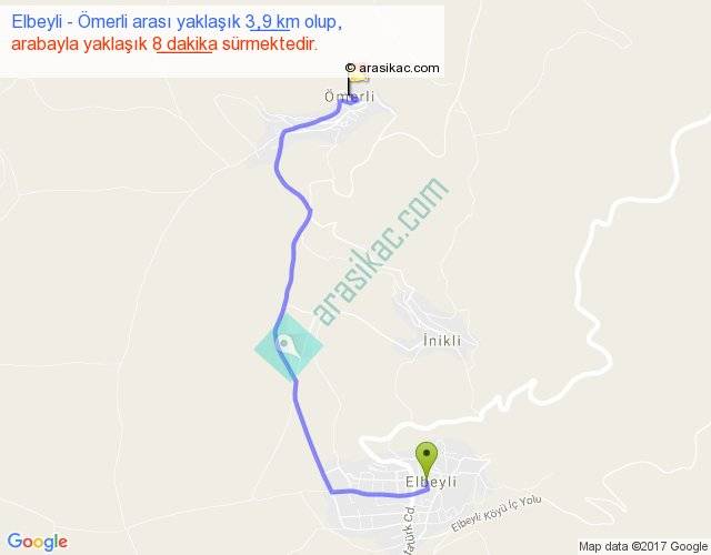 Elbeyli - Ömerli arası yaklaşık olarak 90 km/h ile yukarıda belirtilen sürede olup, iki yerin kuş uçuşu uzaklığı (mesafesi) 3'dir. Yolculuk otobüsle 10 dakika sürmektedir.