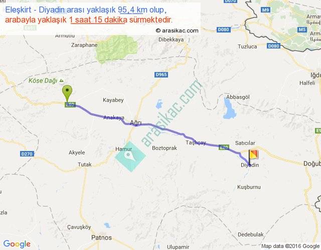 Eğer Eleşkirt Diyadin arası ne kadar yakar (benzin/mazot) diyorsanız, kilometrede 3 ₺ yakan bir aracınız var ise 285, km'de 4 ₺ yakan bir aracınız var ise 380, km'de 5 ₺ yakan bir aracınız var ise 475 ile bu yolculuğu tamamlayabilirsiniz.