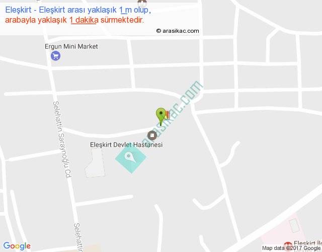 Eleşkirt - Eleşkirt arası yaklaşık olarak 90 km/h ile yukarıda belirtilen sürede olup, iki yerin kuş uçuşu uzaklığı (mesafesi) 0'dir. Yolculuk otobüsle 1 dakika sürmektedir.