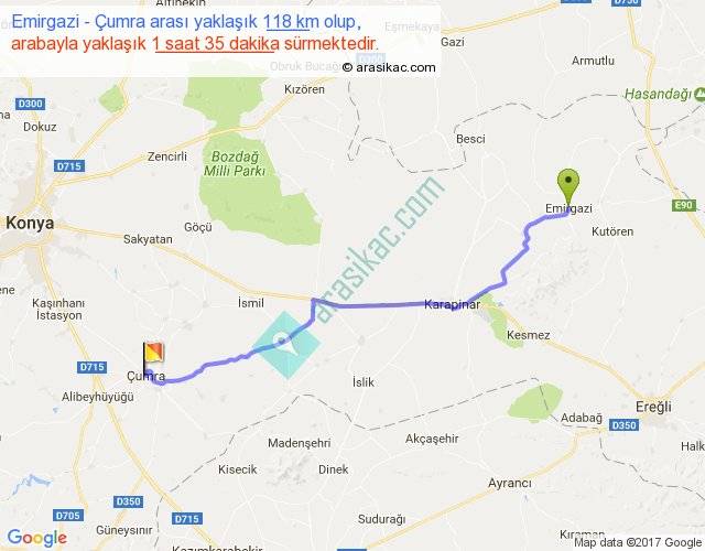 Eğer Emirgazi Çumra arası ne kadar yakar (benzin/mazot) diyorsanız, kilometrede 3 ₺ yakan bir aracınız var ise 351, km'de 4 ₺ yakan bir aracınız var ise 468, km'de 5 ₺ yakan bir aracınız var ise 585 ile bu yolculuğu tamamlayabilirsiniz.