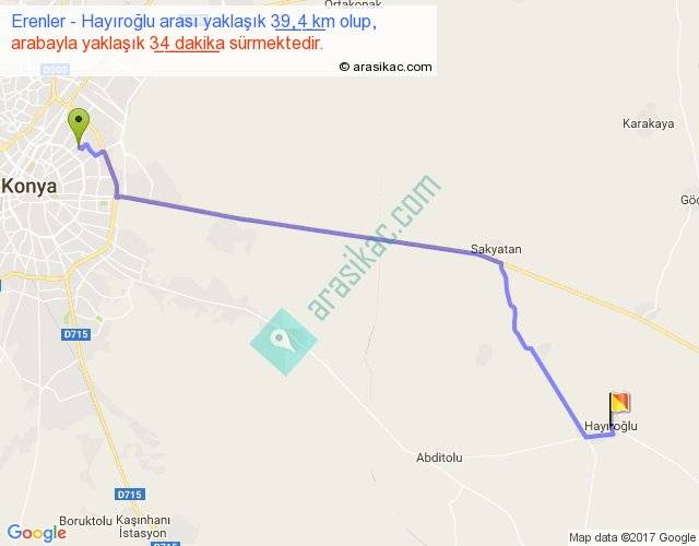 Erenler - Hayıroğlu arası yaklaşık olarak 90 km/h ile yukarıda belirtilen sürede olup, iki yerin kuş uçuşu uzaklığı (mesafesi) 33'dir. Yolculuk otobüsle 44 dakika sürmektedir.