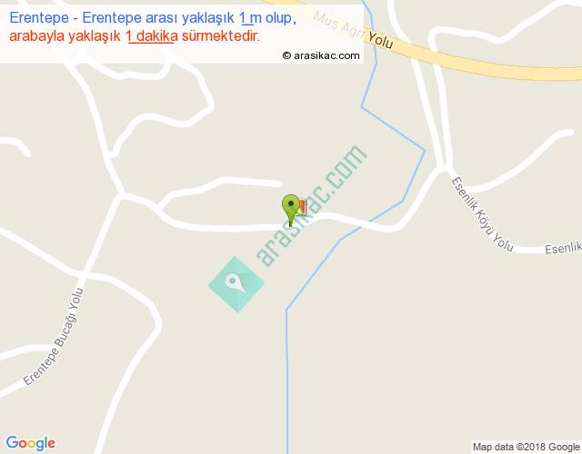 Erentepe - Erentepe arası yaklaşık olarak 90 km/h ile yukarıda belirtilen sürede olup, iki yerin kuş uçuşu uzaklığı (mesafesi) 0'dir. Yolculuk otobüsle 1 dakika sürmektedir.