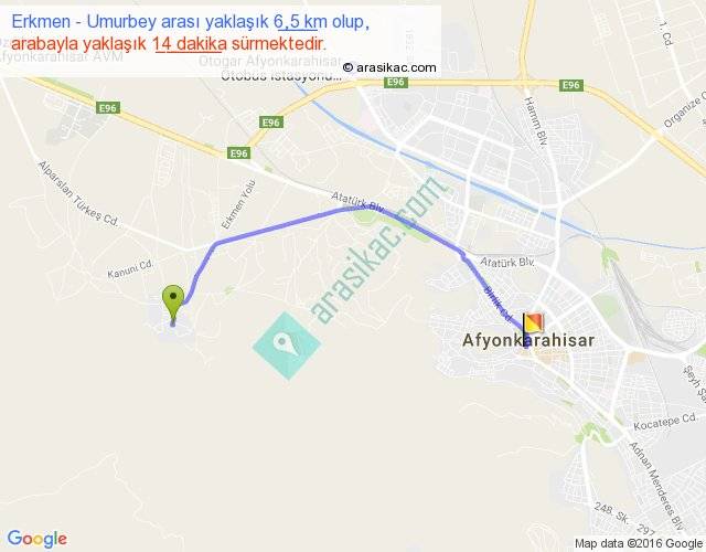 Erkmen - Umurbey arası yaklaşık olarak 90 km/h ile yukarıda belirtilen sürede olup, iki yerin kuş uçuşu uzaklığı (mesafesi) 5'dir. Yolculuk otobüsle 18 dakika sürmektedir.