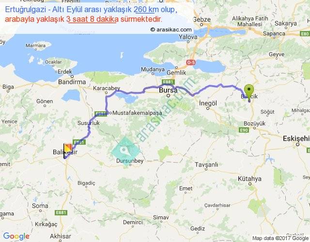Eğer Ertuğrulgazi Altı Eylül arası ne kadar yakar (benzin/mazot) diyorsanız, kilometrede 3 ₺ yakan bir aracınız var ise 780, km'de 4 ₺ yakan bir aracınız var ise 1040, km'de 5 ₺ yakan bir aracınız var ise 1300 ile bu yolculuğu tamamlayabilirsiniz.