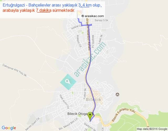Ertuğrulgazi - Bahçelievler arası yaklaşık olarak 90 km/h ile yukarıda belirtilen sürede olup, iki yerin kuş uçuşu uzaklığı (mesafesi) 3'dir. Yolculuk otobüsle 9 dakika sürmektedir.