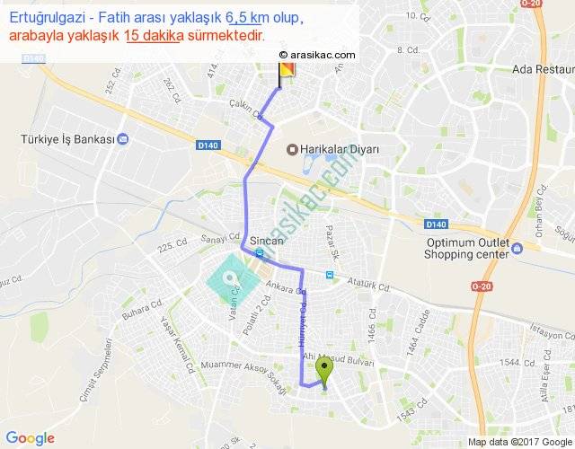 Ertuğrulgazi - Fatih arası yaklaşık olarak 90 km/h ile yukarıda belirtilen sürede olup, iki yerin kuş uçuşu uzaklığı (mesafesi) 5'dir. Yolculuk otobüsle 19 dakika sürmektedir.
