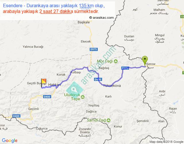 Esendere - Durankaya arası yaklaşık olarak 90 km/h ile yukarıda belirtilen sürede olup, iki yerin kuş uçuşu uzaklığı (mesafesi) 88'dir. Yolculuk otobüsle 3 saat 11 dakika sürmektedir.