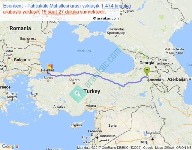 Eğer Esenkent Tahtakale Mahallesi arası ne kadar yakar (benzin/mazot) diyorsanız, kilometrede 3 ₺ yakan bir aracınız var ise 4422, km'de 4 ₺ yakan bir aracınız var ise 5896, km'de 5 ₺ yakan bir aracınız var ise 7370 ile bu yolculuğu tamamlayabilirsiniz.