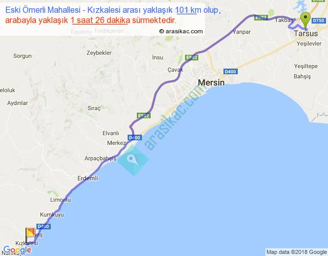 Eski Ömerli Mahallesi - Kızkalesi arası yaklaşık olarak 90 km/h ile yukarıda belirtilen sürede olup, iki yerin kuş uçuşu uzaklığı (mesafesi) 83'dir. Yolculuk otobüsle 1 saat 51 dakika sürmektedir.