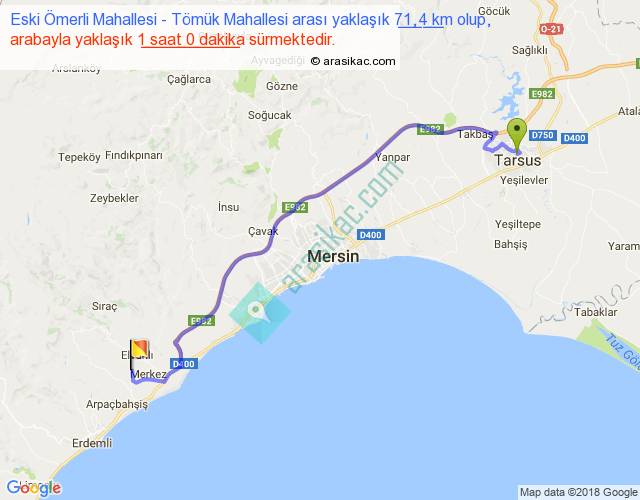 Eski Ömerli Mahallesi - Tömük Mahallesi arası yaklaşık olarak 90 km/h ile yukarıda belirtilen sürede olup, iki yerin kuş uçuşu uzaklığı (mesafesi) 54'dir. Yolculuk otobüsle 1 saat 18 dakika sürmektedir.