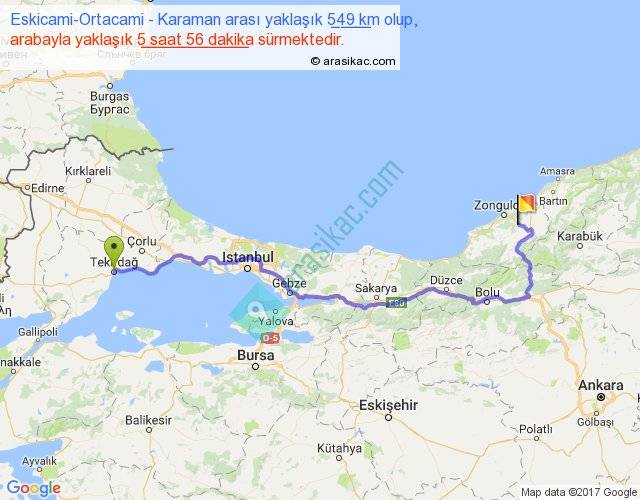 Eğer Eskicami-Ortacami Karaman arası ne kadar yakar (benzin/mazot) diyorsanız, kilometrede 3 ₺ yakan bir aracınız var ise 1647, km'de 4 ₺ yakan bir aracınız var ise 2196, km'de 5 ₺ yakan bir aracınız var ise 2745 ile bu yolculuğu tamamlayabilirsiniz.