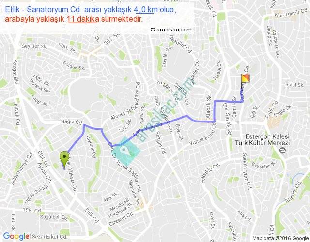 Eğer Etlik Sanatoryum Cd. arası ne kadar yakar (benzin/mazot) diyorsanız, kilometrede 3 ₺ yakan bir aracınız var ise 12, km'de 4 ₺ yakan bir aracınız var ise 16, km'de 5 ₺ yakan bir aracınız var ise 20 ile bu yolculuğu tamamlayabilirsiniz.