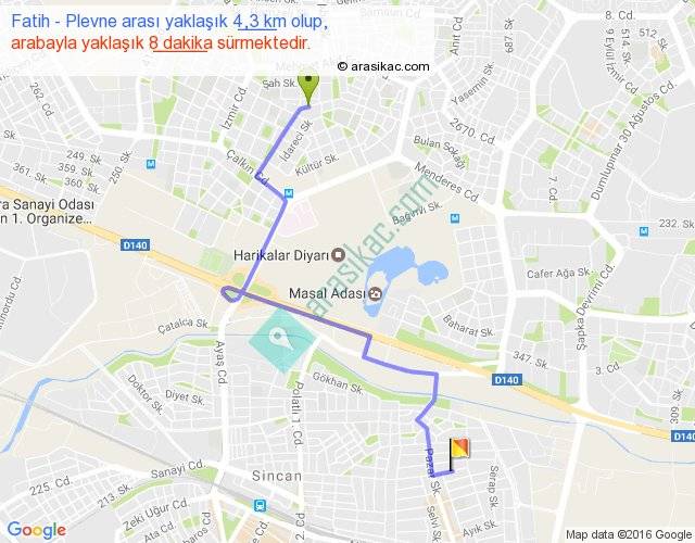 Fatih - Plevne arası yaklaşık olarak 90 km/h ile yukarıda belirtilen sürede olup, iki yerin kuş uçuşu uzaklığı (mesafesi) 3'dir. Yolculuk otobüsle 10 dakika sürmektedir.