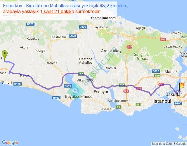 Fenerköy - Kirazlıtepe Mahallesi arası yaklaşık olarak 90 km/h ile yukarıda belirtilen sürede olup, iki yerin kuş uçuşu uzaklığı (mesafesi) 70'dir. Yolculuk otobüsle 1 saat 45 dakika sürmektedir.