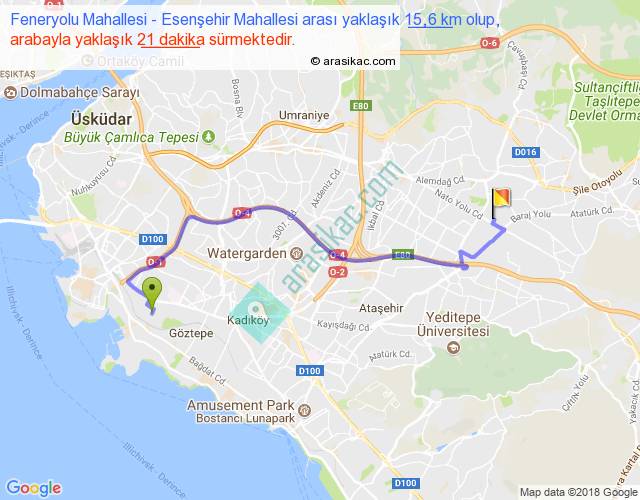 Eğer Feneryolu Mahallesi Esenşehir Mahallesi arası ne kadar yakar (benzin/mazot) diyorsanız, kilometrede 3 ₺ yakan bir aracınız var ise 45, km'de 4 ₺ yakan bir aracınız var ise 60, km'de 5 ₺ yakan bir aracınız var ise 75 ile bu yolculuğu tamamlayabilirsiniz.