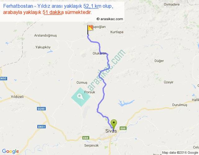 Ferhatbostan - Yıldız arası yaklaşık olarak 90 km/h ile yukarıda belirtilen sürede olup, iki yerin kuş uçuşu uzaklığı (mesafesi) 37'dir. Yolculuk otobüsle 1 saat 6 dakika sürmektedir.