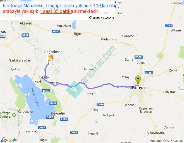 Feritpaşa Mahallesi - Deştiğin arası yaklaşık olarak 90 km/h ile yukarıda belirtilen sürede olup, iki yerin kuş uçuşu uzaklığı (mesafesi) 77'dir. Yolculuk otobüsle 2 saat 3 dakika sürmektedir.