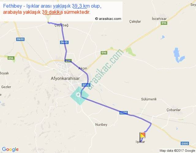 Fethibey - Işıklar arası yaklaşık olarak 90 km/h ile yukarıda belirtilen sürede olup, iki yerin kuş uçuşu uzaklığı (mesafesi) 29'dir. Yolculuk otobüsle 50 dakika sürmektedir.