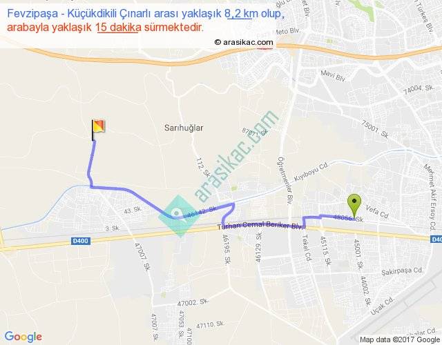 Fevzipaşa - Küçükdikili Çınarlı arası yaklaşık olarak 90 km/h ile yukarıda belirtilen sürede olup, iki yerin kuş uçuşu uzaklığı (mesafesi) 6'dir. Yolculuk otobüsle 19 dakika sürmektedir.