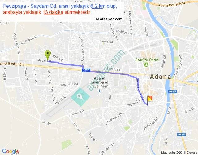 Fevzipaşa - Saydam Cd. arası yaklaşık olarak 90 km/h ile yukarıda belirtilen sürede olup, iki yerin kuş uçuşu uzaklığı (mesafesi) 5'dir. Yolculuk otobüsle 16 dakika sürmektedir.