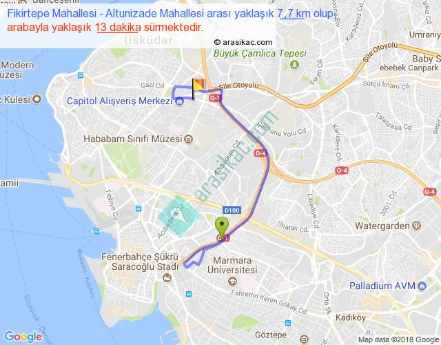 Fikirtepe Mahallesi - Altunizade Mahallesi arası yaklaşık olarak 90 km/h ile yukarıda belirtilen sürede olup, iki yerin kuş uçuşu uzaklığı (mesafesi) 3'dir. Yolculuk otobüsle 16 dakika sürmektedir.