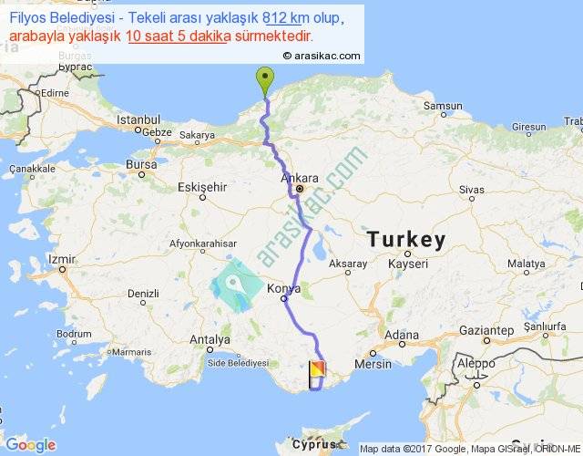 Filyos Belediyesi - Tekeli arası yaklaşık olarak 90 km/h ile yukarıda belirtilen sürede olup, iki yerin kuş uçuşu uzaklığı (mesafesi) 607'dir. Eğer belirtilen yerler arasında uçak seferi var ise bu süre uçakla 56 dakika'ya kadar düşebilir. Yolculuk otobüsle 13 saat 6 dakika sürmektedir.