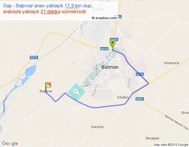 Gap - Balpınar arası yaklaşık olarak 90 km/h ile yukarıda belirtilen sürede olup, iki yerin kuş uçuşu uzaklığı (mesafesi) 8'dir. Yolculuk otobüsle 27 dakika sürmektedir.